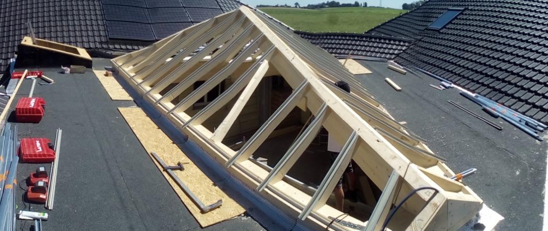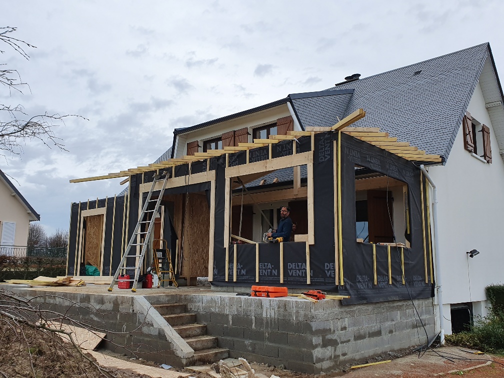 Construction d' une extension . Les étapes d'un chantier.